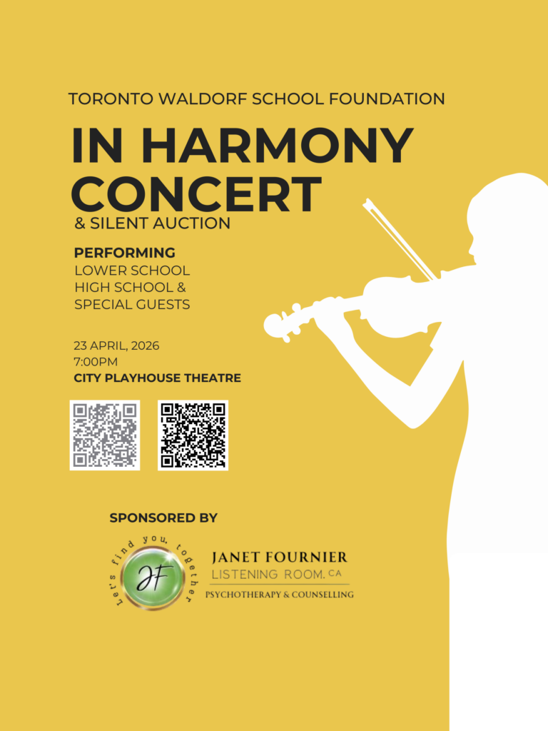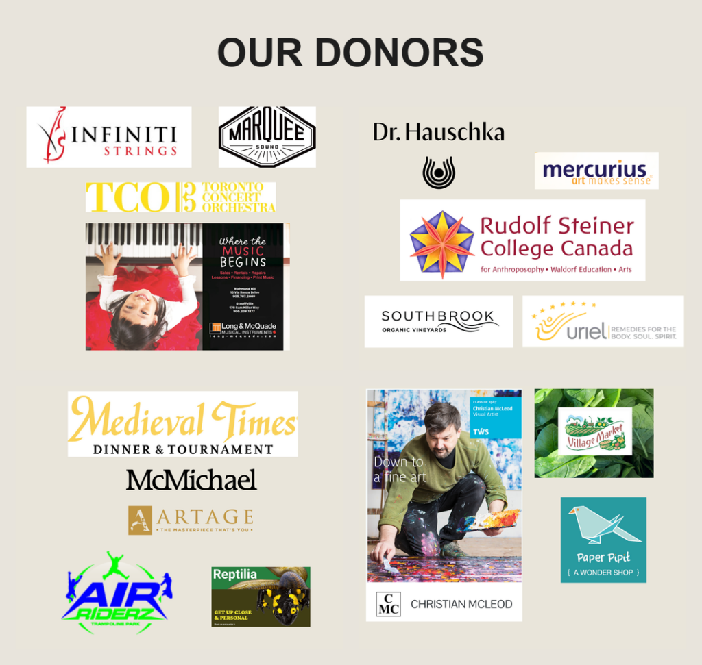 Silent auction proceeds support the Toronto Waldorf School Foundation General Fund. A portion of concert proceeds supports private music lessons for students with demonstrated financial need.